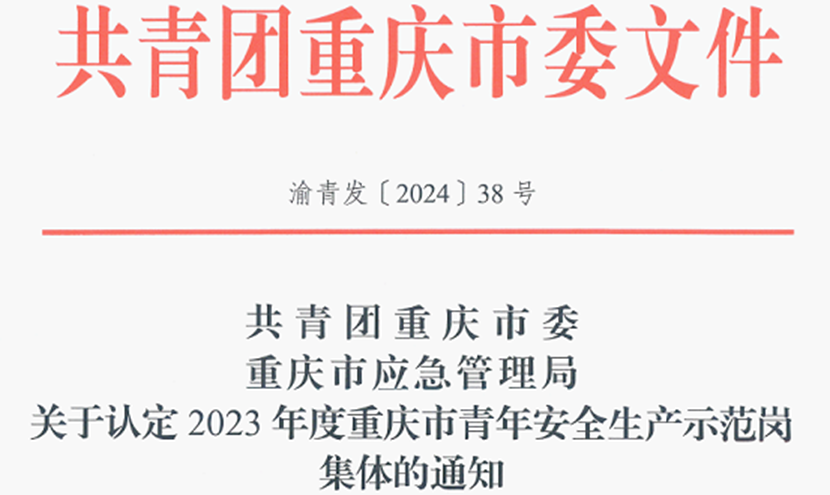 4月30日,共青團(tuán)重慶市委、重慶市應(yīng)急管理局聯(lián)合下發(fā)《關(guān)于認(rèn)定2023年度重慶市青年安全生產(chǎn)示范崗集體的通知》,中冶賽迪裝備有限公司鉗工六組被認(rèn)定為2023年度重慶市青年安全生產(chǎn)示范崗。